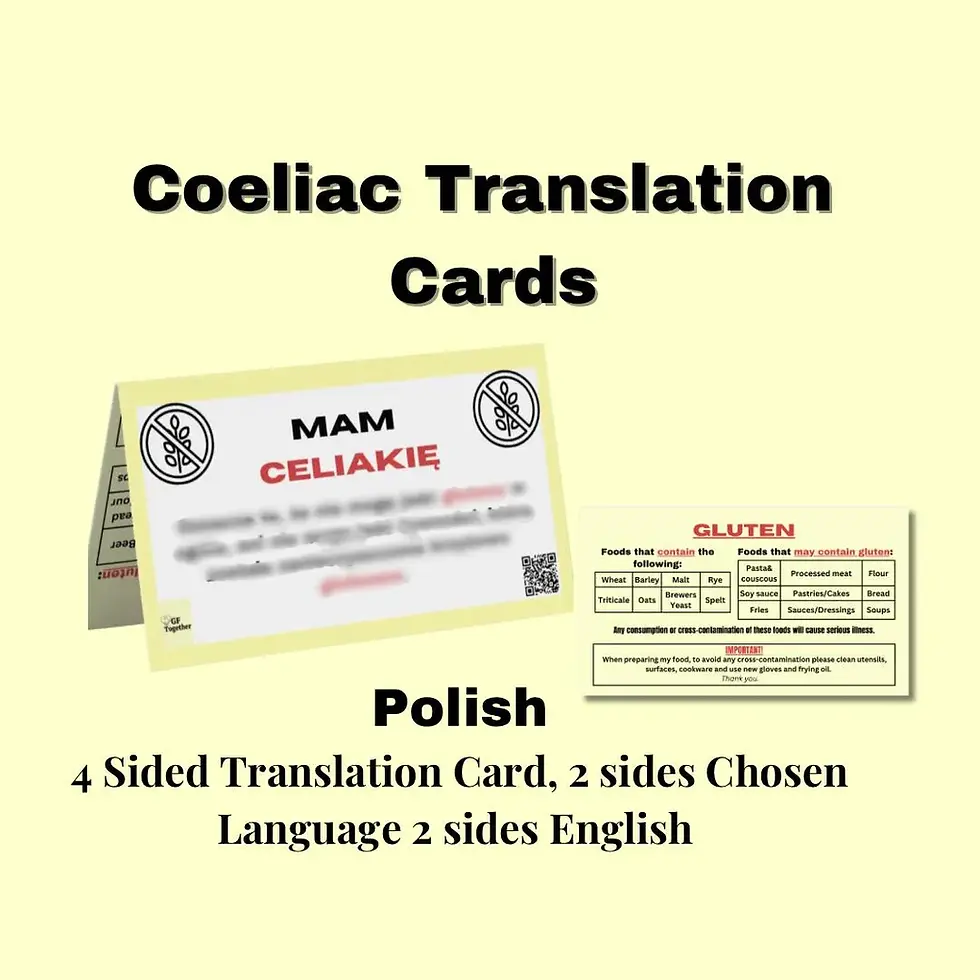 Explore our range of supportive products for coeliacs, including translation cards, awareness bracelets, stickers, and keychains designed to make living gluten free a little easier.